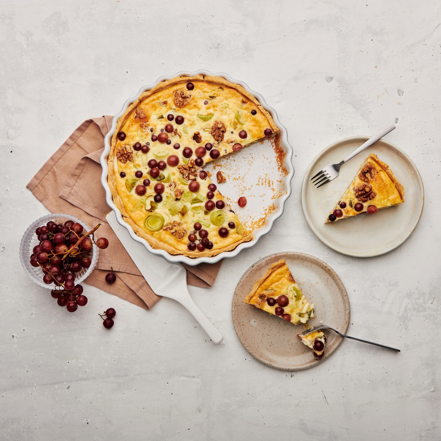 Trauben-Lauchtarte mit Ziegenkäse