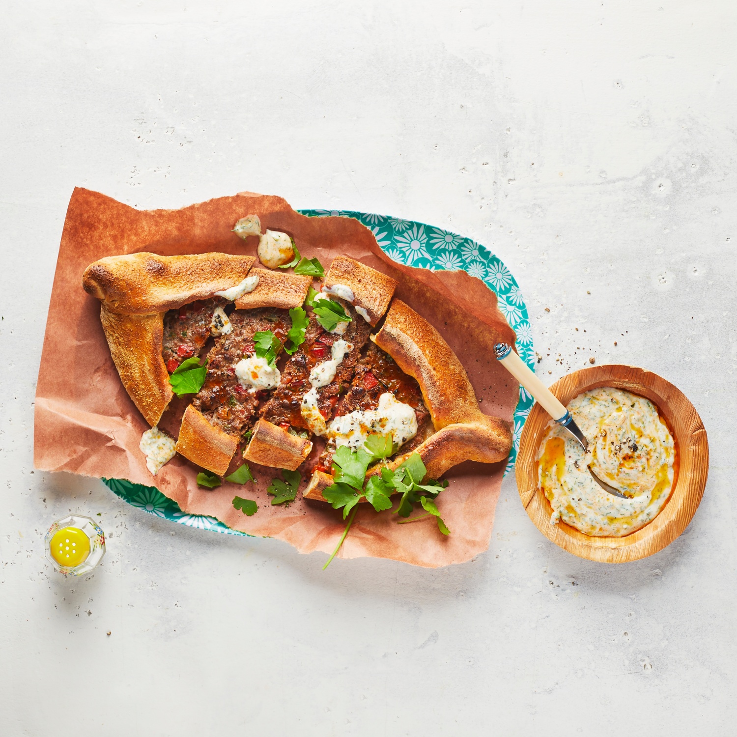 Türkische Hackfleisch-Pide mit Kräuterjoghurt