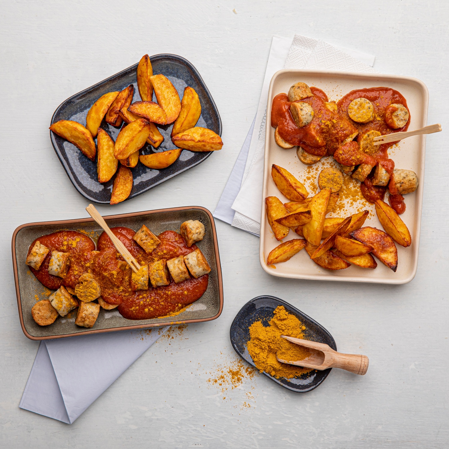 Lust auf Currywurst? Probiere unsere vegane Variante ohne Schnickschnack und mit Kartoffel-Wedges frisch vom Grill. Zum Rezept