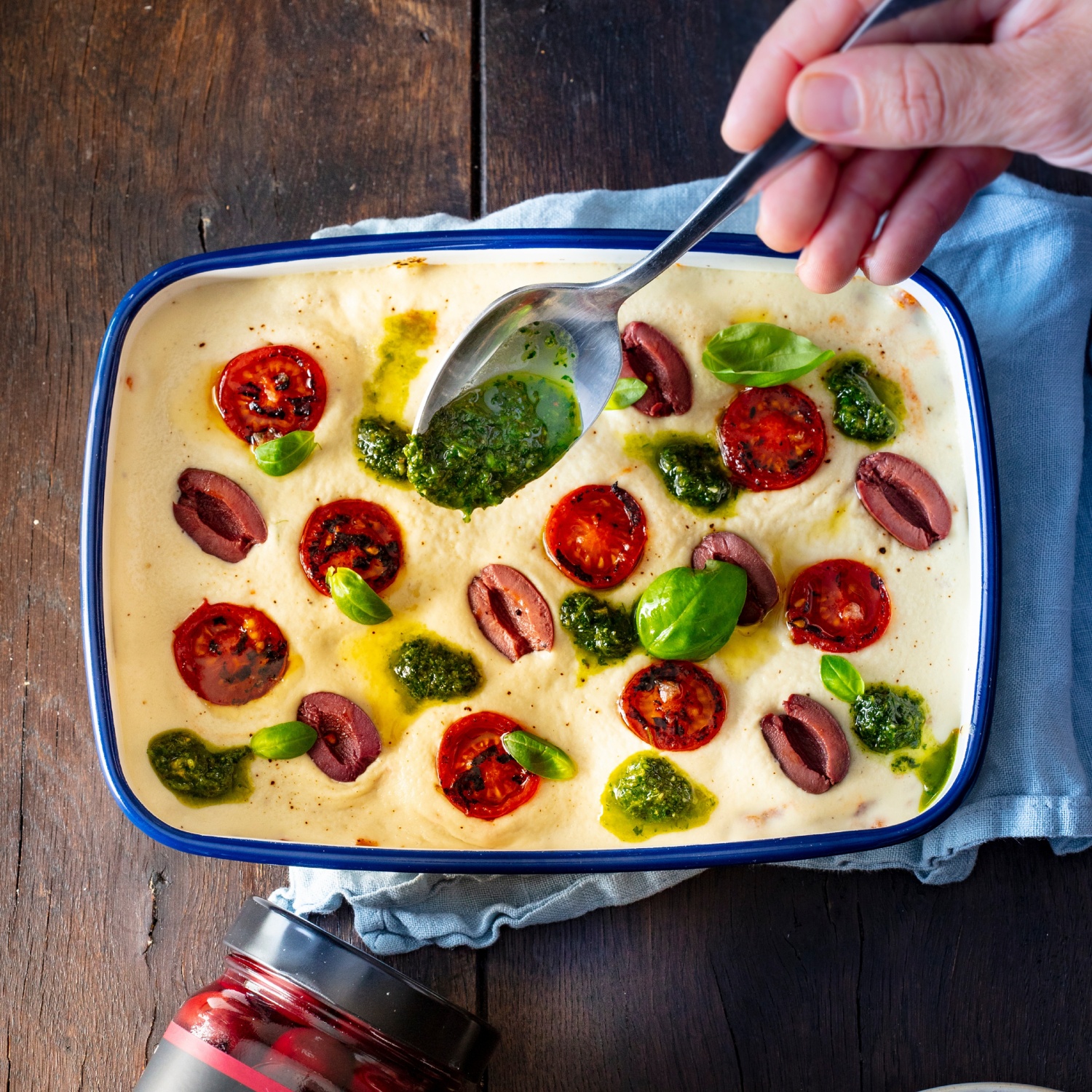 - Gebackene Lasagne mit dem Korianderpesto und frischen Basilikumblättern servieren.