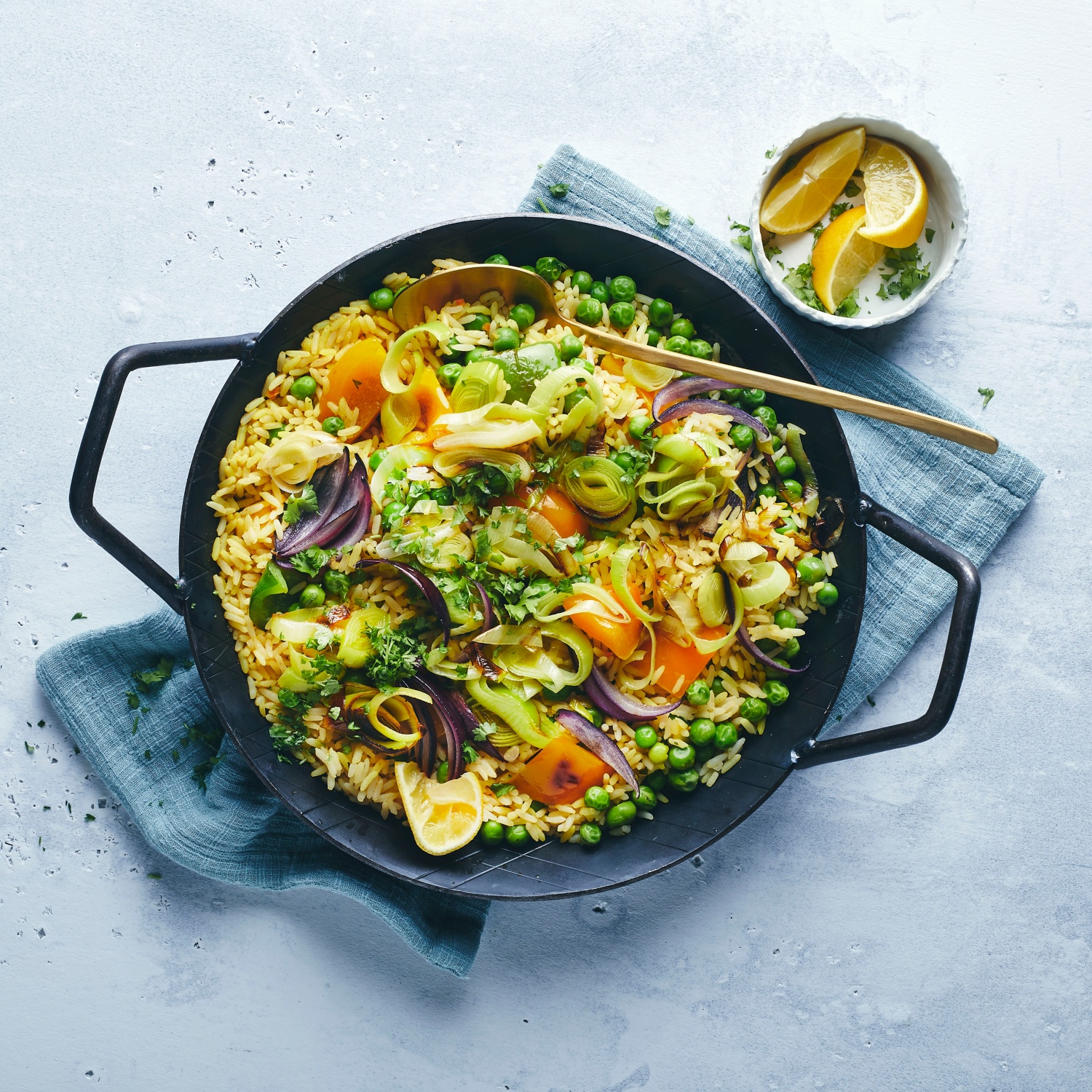 Groß, größer, Paella! Das beliebte spanische Gericht genießt man am besten gemeinsam und bei dieser veganen Variante essen wirklich alle mit! Zum Rezept