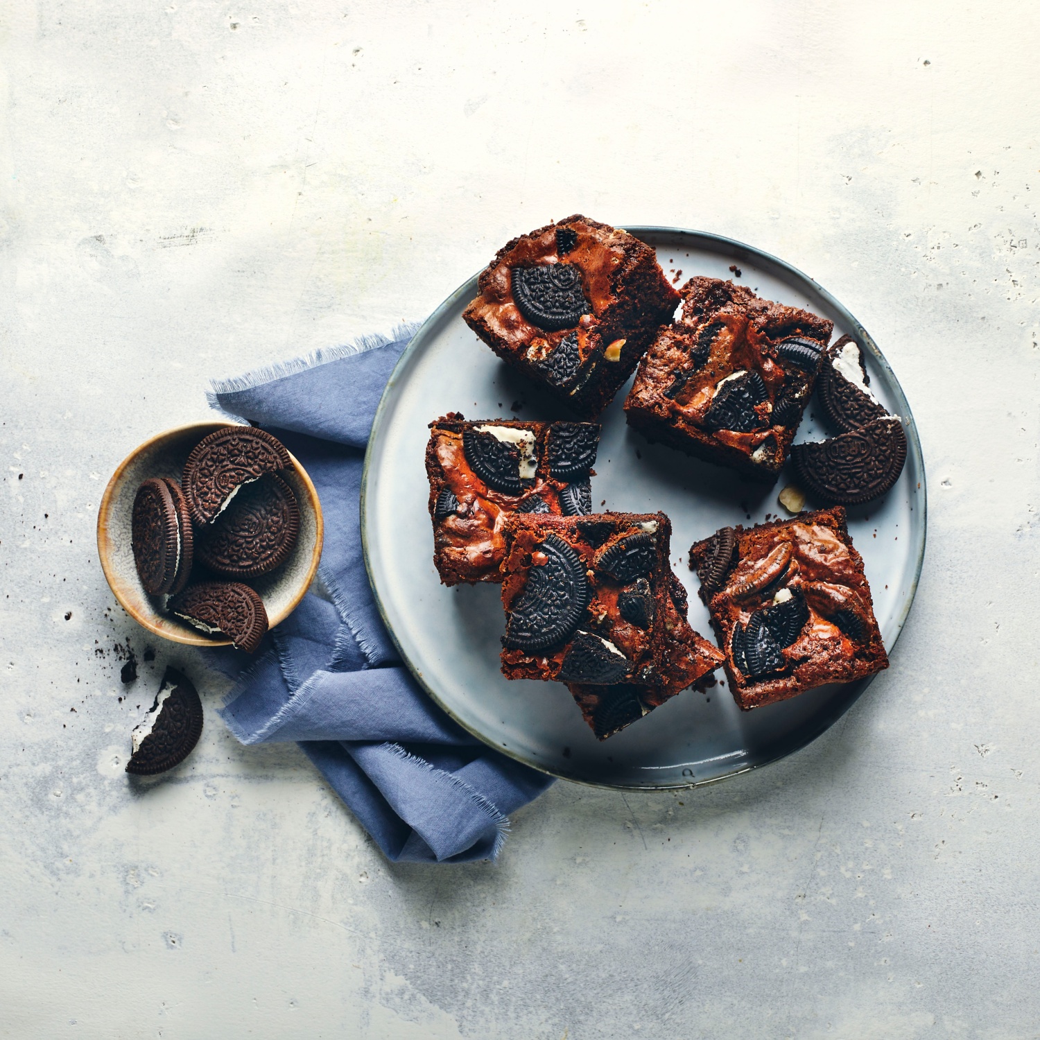 - Die restlichen Oreo-Kekse vierteln und auf den Brownies verteilen. Im vorgeheizten Ofen bei 180 °C Umluft (200 °C Ober- und Unterhitze) 40-45 Minuten backen. Anschließend 30 Minuten abkühlen lassen.