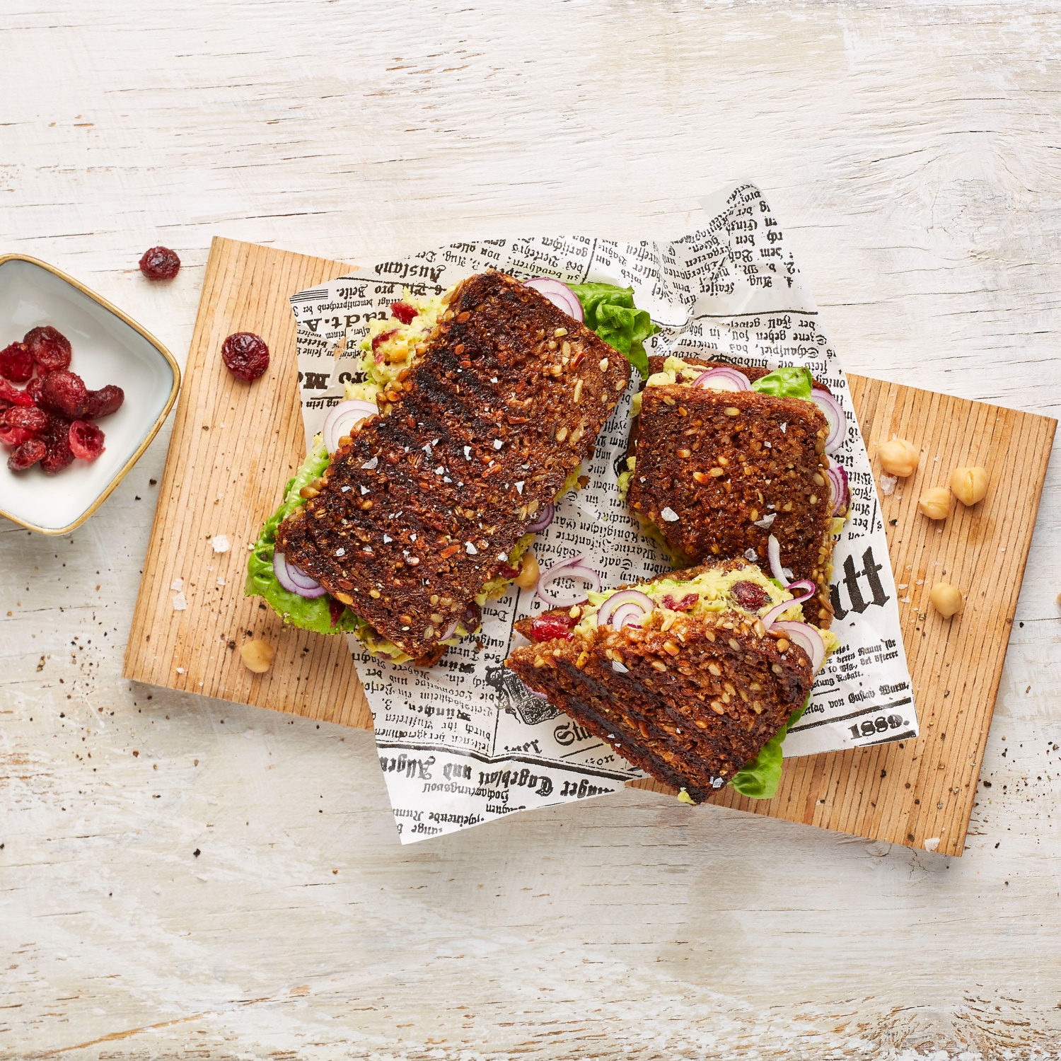 Veganes Sandwich mit Avocado, Kichererbsen und Cranberries