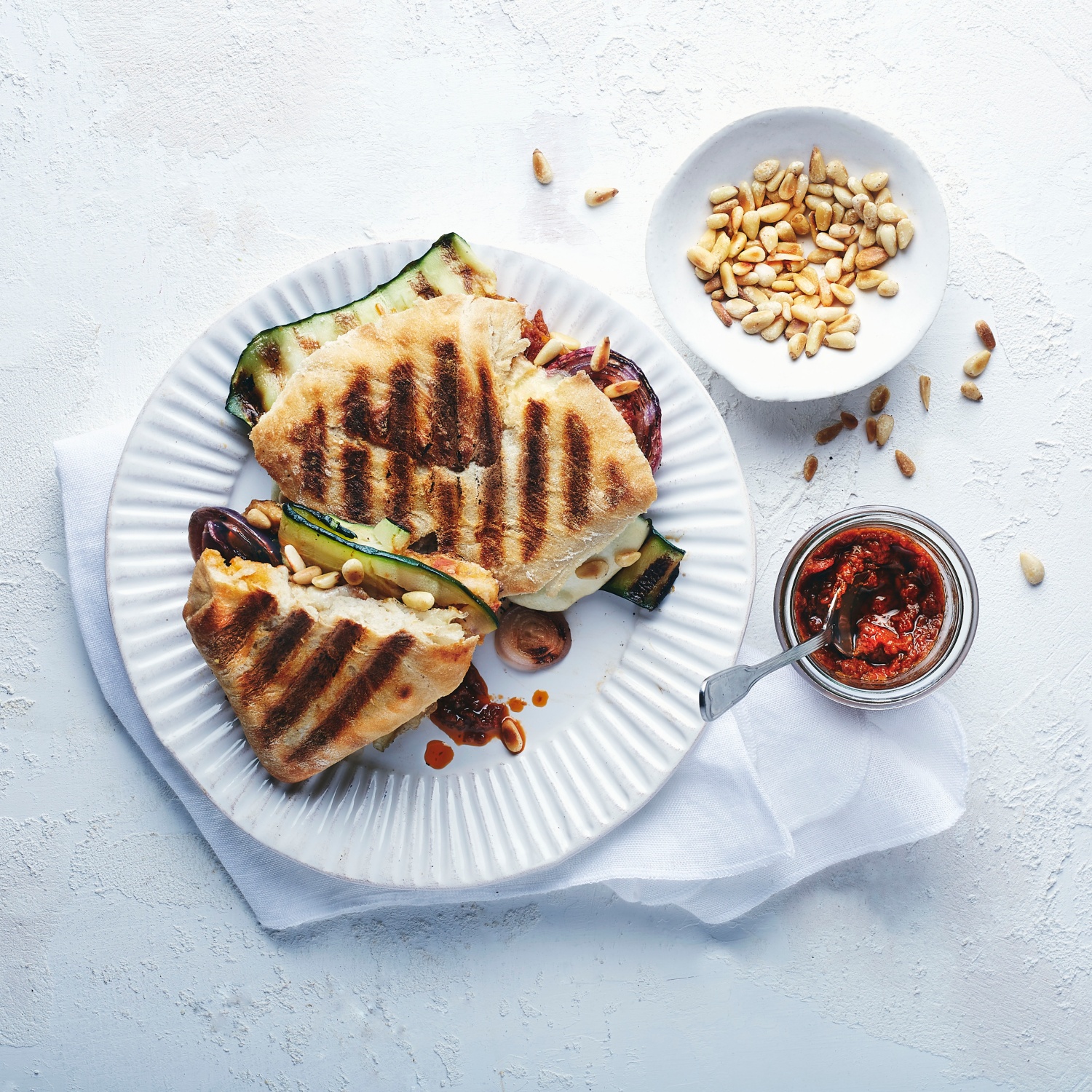 Veggie-Panini mit Mozzarella und Pesto Rosso
