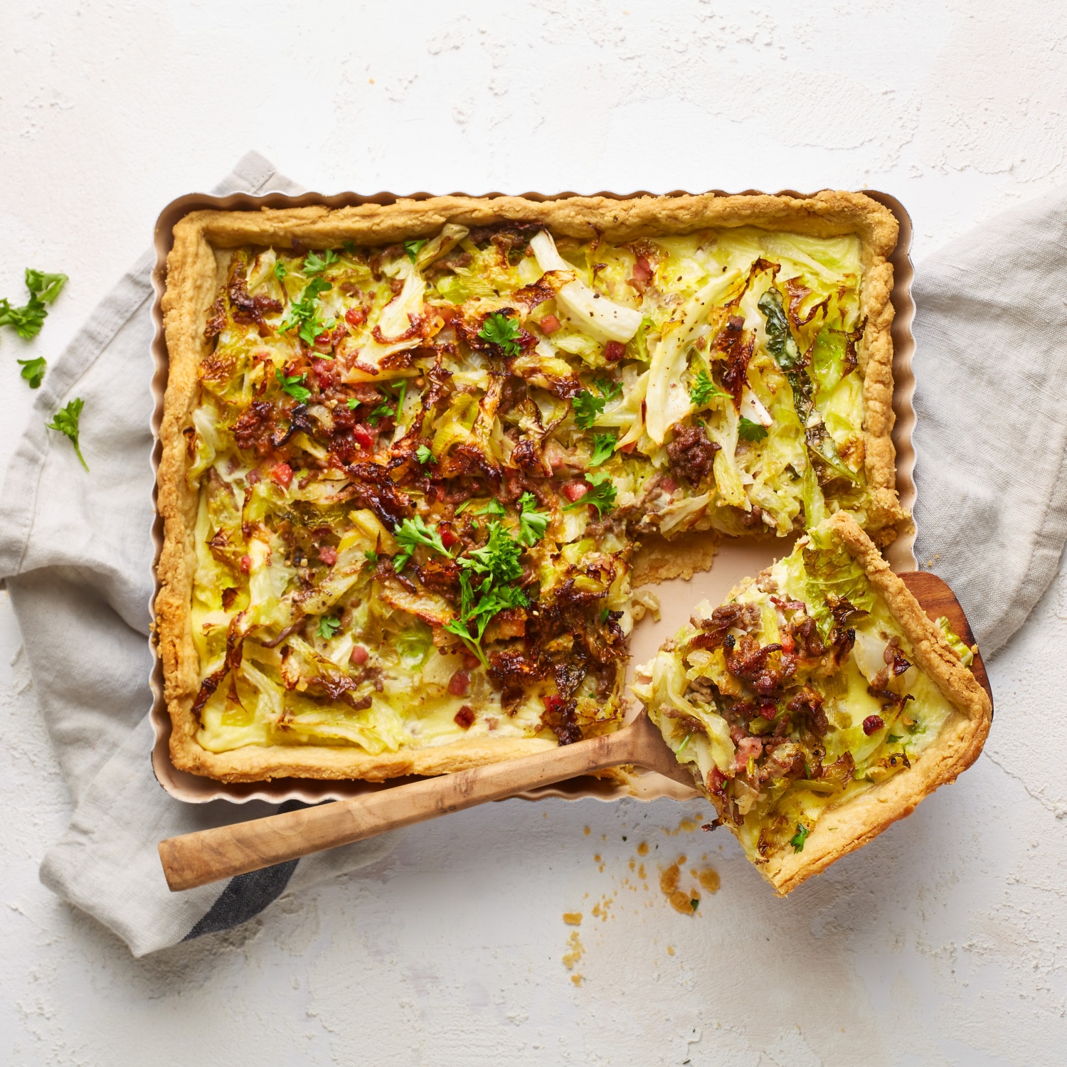 Eine Quiche mit Persönlichkeit, bunt und voller Geschmack. Dieses Rezept kombiniert die Säfte des Schweins mit der Leichtigkeit des Wirsings. Zum Rezept