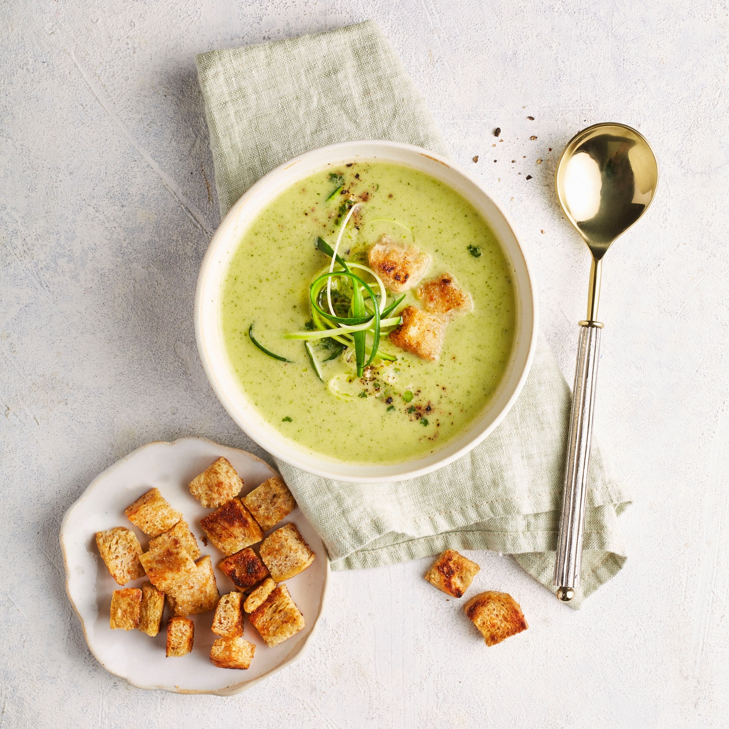 Zucchini-Cremesuppe mit Croûtons