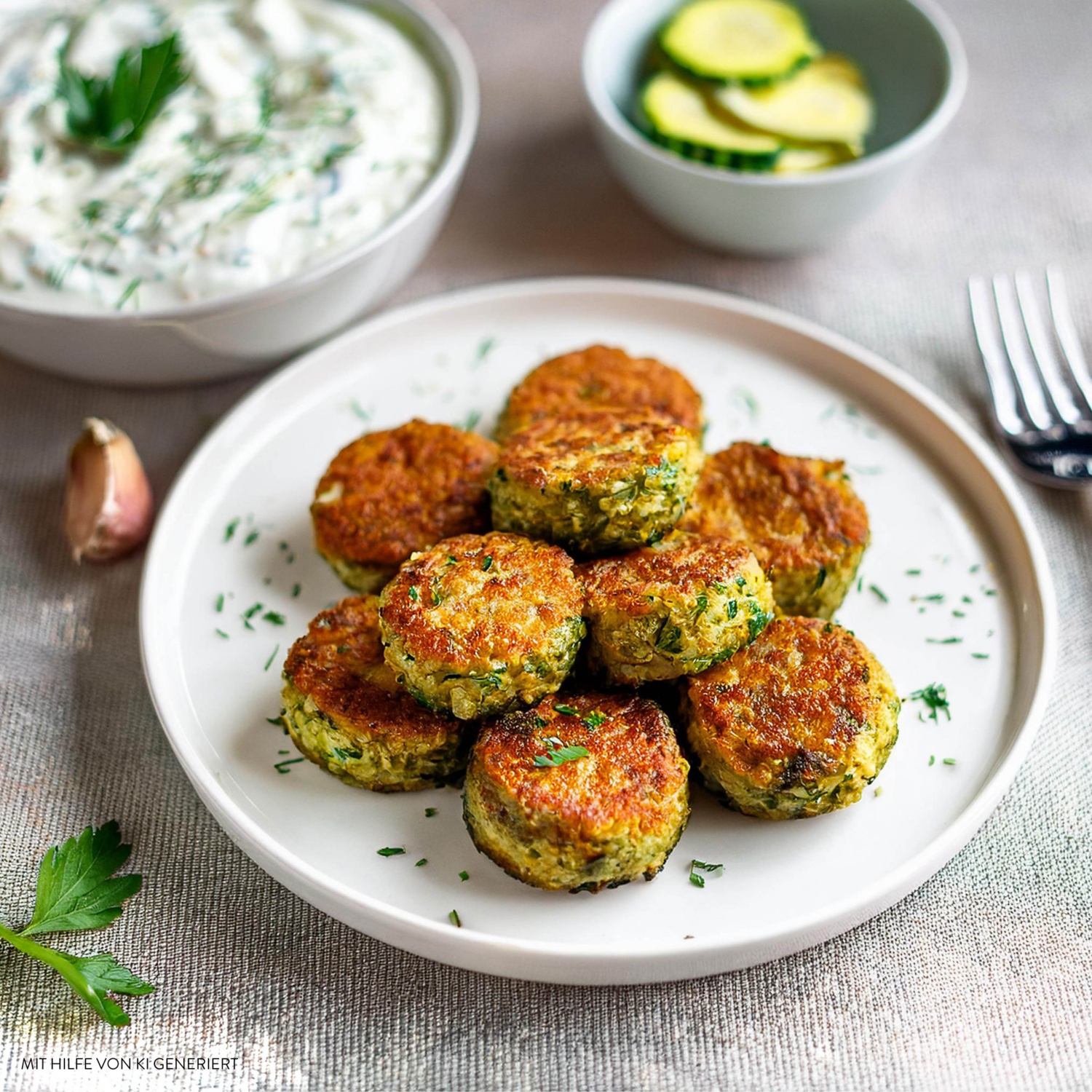 Zucchini-Keftedes mit Zaziki