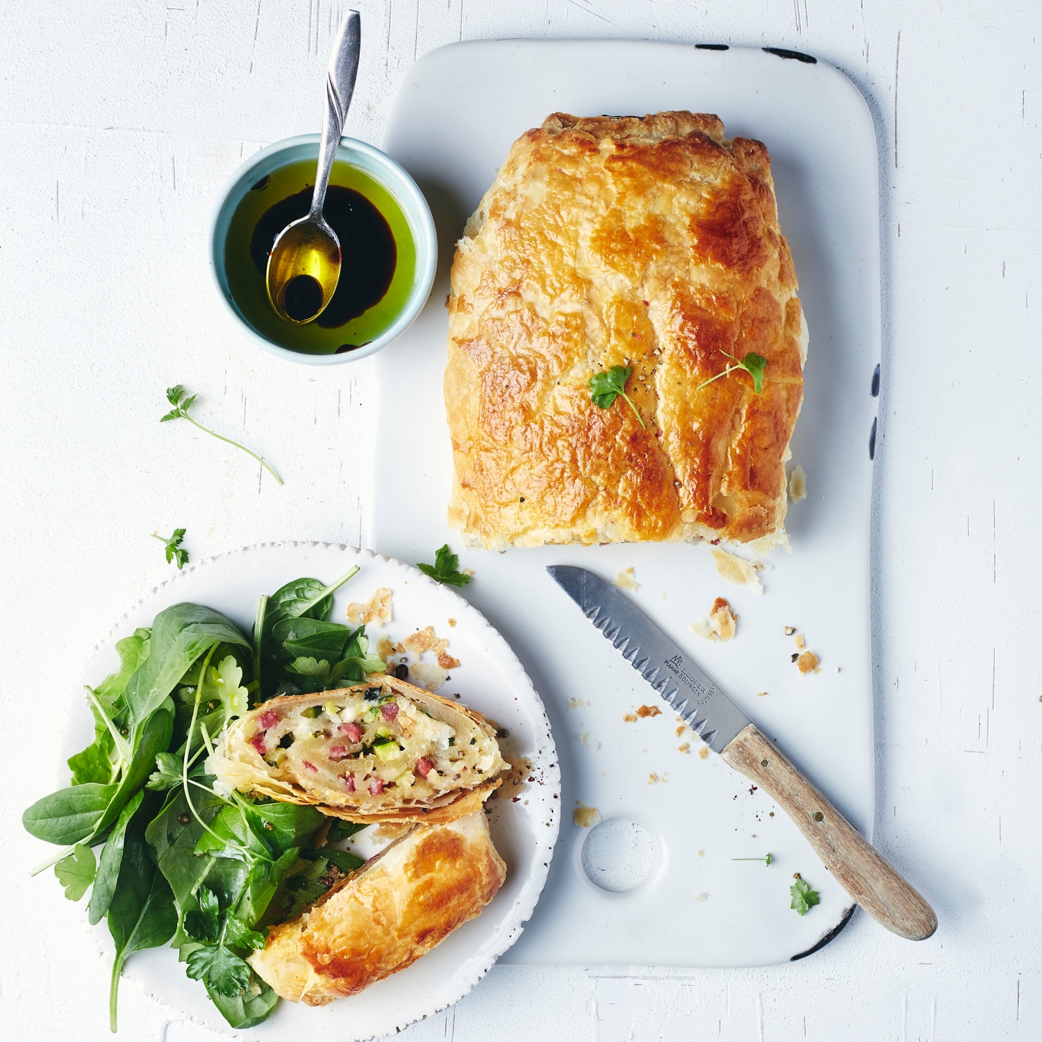 Knuspriger Blätterteig mit einer pikanten und saftigen Füllung – unser Zucchini-Strudel ist nicht nur optisch ein Highlight! Zum Rezept