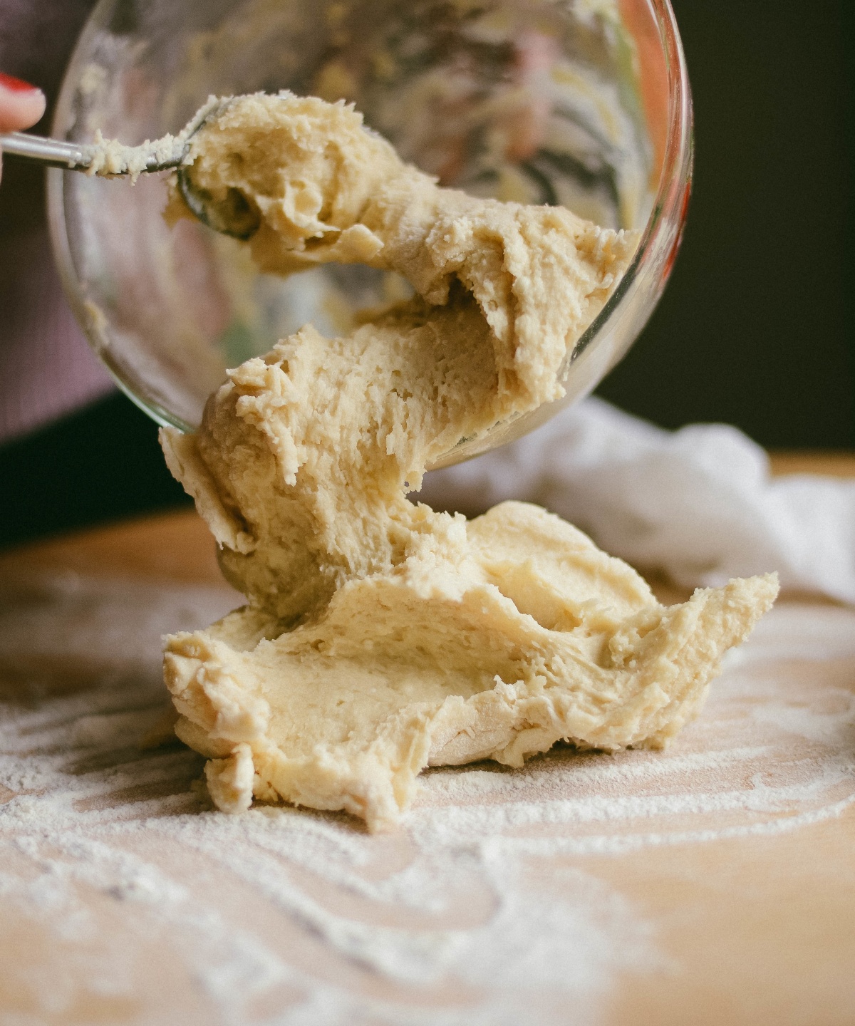 - Daher empfiehlt es sich, das Mehl mit einem Teigschaber oder einem großen Schneebesen vorsichtig unter die Butter-Zucker-Mischung zu heben.