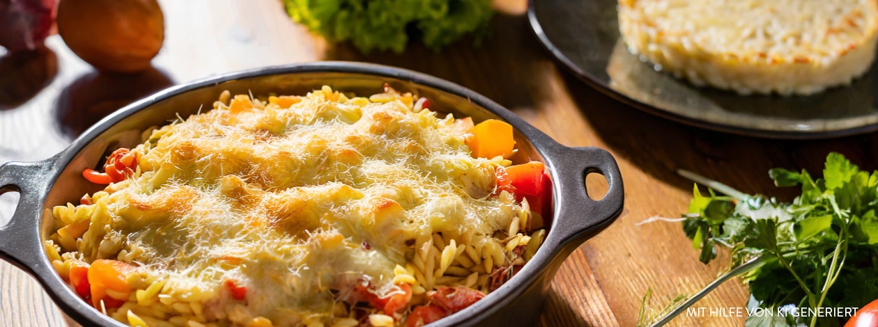 Mach dich bereit für köstliche Nudelaufläufe, bei denen Risoni im Mittelpunkt steht. Überbacken mit Parmesan und verfeinert mit einer saftigen Sauce werden diese Aufläufe zum Highlight auf deinem Teller. Ganz gleich, ob als Hauptspeise oder Beilage: Risoni-Nudelaufläufe passen perfekt in deinen Speiseplan.
