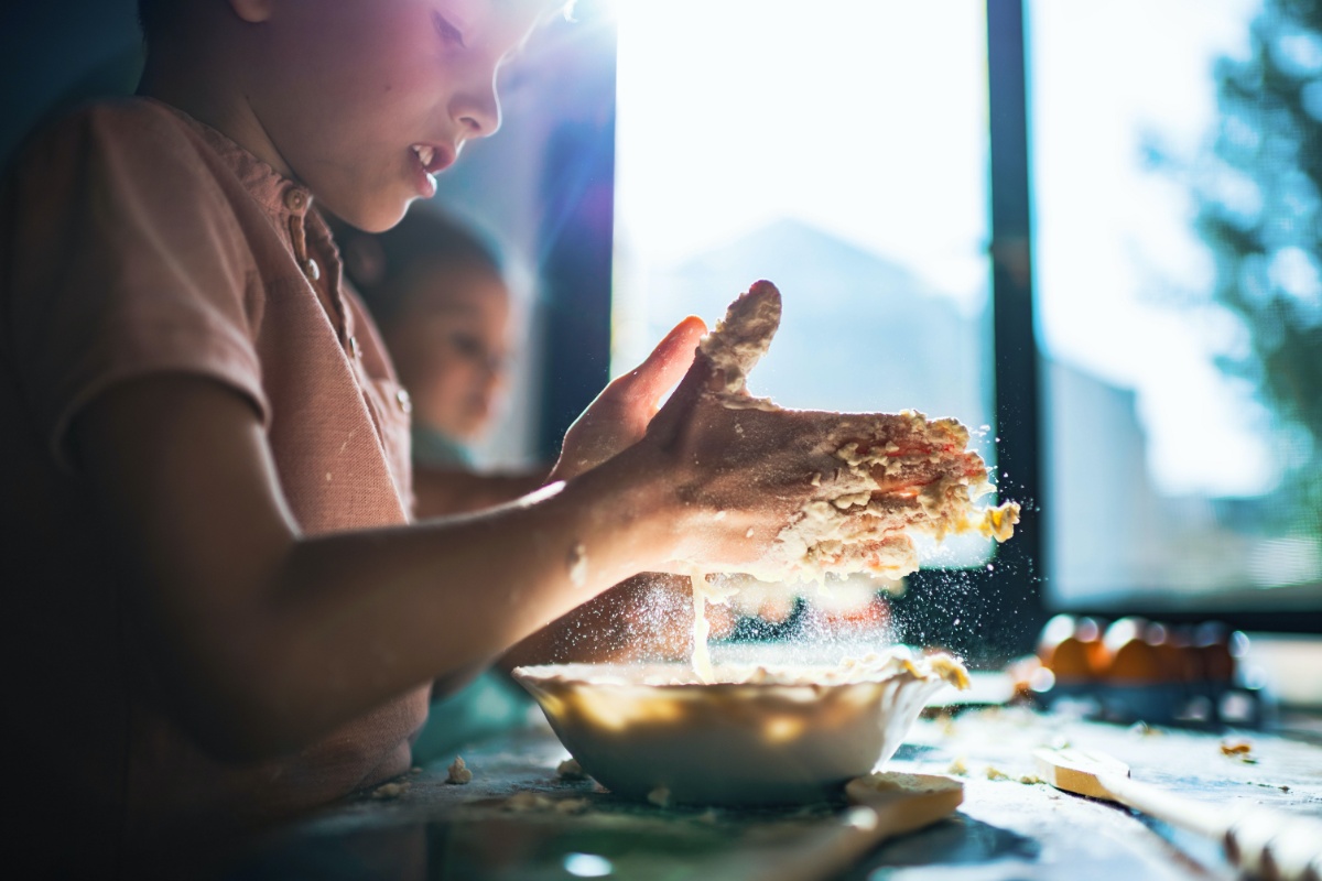 Die Jüngsten unterstützen gern beim Backen. So lieben es die Sprösslinge, vorher abgewogene Zutaten in den Teig zu geben und ihn zu kneten. Auch beim Verzieren können die Kleinen helfen.