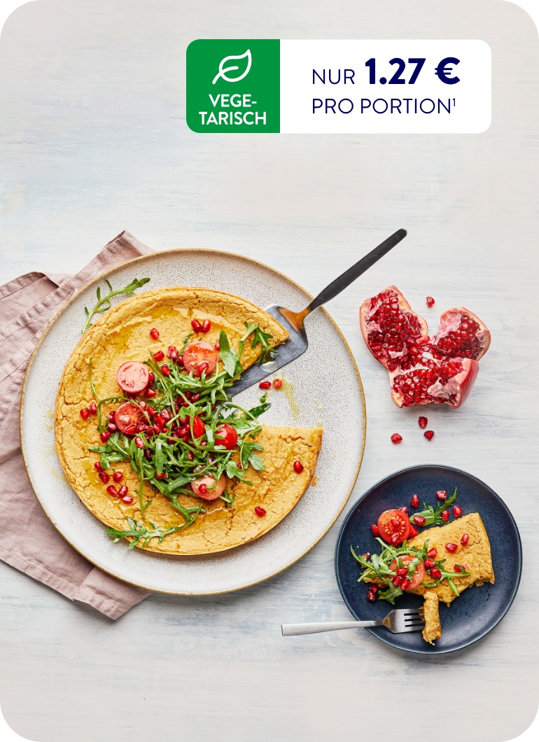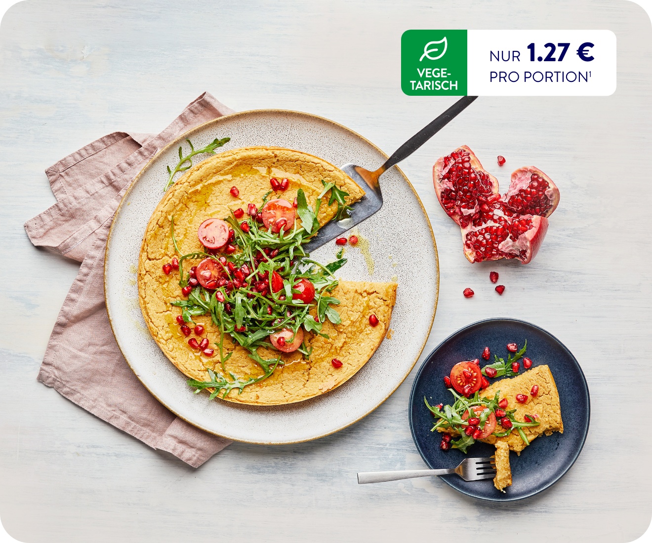 2 Dosen KING'S CROWN Kichererbsen: 1,38 € (425 ml = 0,69 € / 1 kg = 2,60 €) / 100 g GOLDÄHREN Weizenmehl Type 405: 0,08 € (1 kg = 0,79 €) / 1 Zehe NATUR LIEBLINGE Knoblauch: 0,01 € (200 g Netz = 0,69 € / 1 kg = 3,45 €) / CANTINELLE Natives Olivenöl extra (15 ml): 0,10 € (750 ml = 4,99 € / 1 l = 6,65 €) / 4 EL DELIKATO Wein-Branntwein-Essig (60 ml): 0,02 € (1 l = 0,38 €) / 2 Zweige Bio-Topfkräuter Rosmarin (optional): 0,26 € (1 Topf = 1,29 €) / 150 g Rucola: 1,07 € € (125 g Packung = 0,89 € / 1 kg = 7,12 €) / 1 Granatapfel: 1,29 € (1 Stück = 1,29 €) / 200 g NATUR LIEBLINGE Cocktailrispentomaten: 0,85 € (400 g Packung = 1,69 € / 1 kg = 4,23 €) / ½ TL DELIKATO Delikatess-Senf, mittelscharf (3 g): 0,01 € (200 ml = 0,79 € / 1 l = 3,95 €)