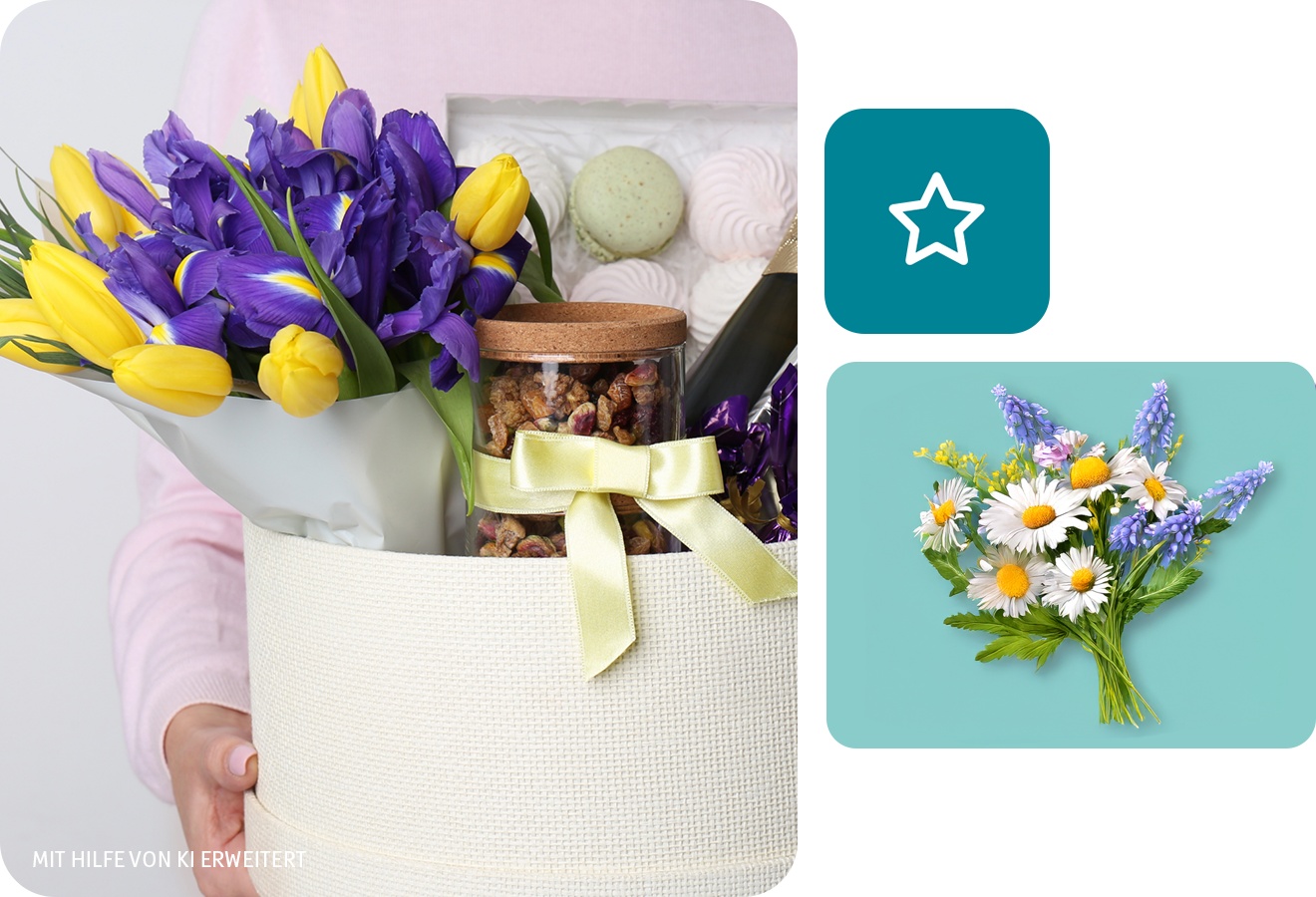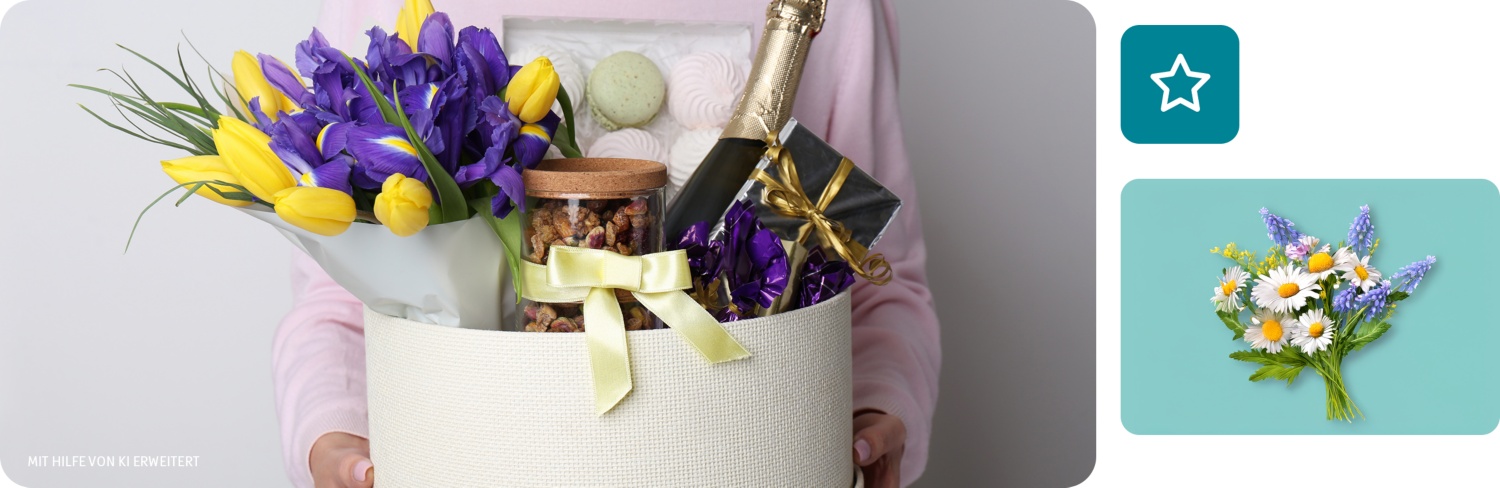 - Firmengeschenke: Geschenkboxen für die Mitarbeitenden, für Kund:innen oder Geschäftspartner:innen sind eine schöne Idee. Regionale Köstlichkeiten oder die eigene Produktpalette bieten sich besonders an.