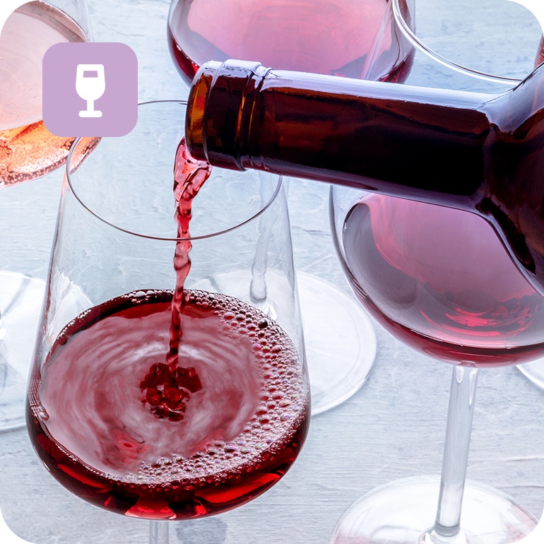 Die Farbintensität hängt stark von der Rebsorte ab – genauer gesagt von der Dicke der Traubenschale und der Menge der darin enthaltenen Anthocyane. Sorten wie Dornfelder, Merlot, Cabernet Sauvignon und Syrah haben eine dickere Schale, sodass aus ihnen besonders tiefdunkle Weine hervorgehen. Pinot und Spätburgunder fallen hingegen in der Regel heller aus. Insgesamt reicht die Farbenvielfalt von Rosa- und Pinktönen über Kirschrot und Granatrot, bis hin zu Purpur, Violett und beinahe Schwarzblau – das Farbspektrum ist beeindruckend groß.