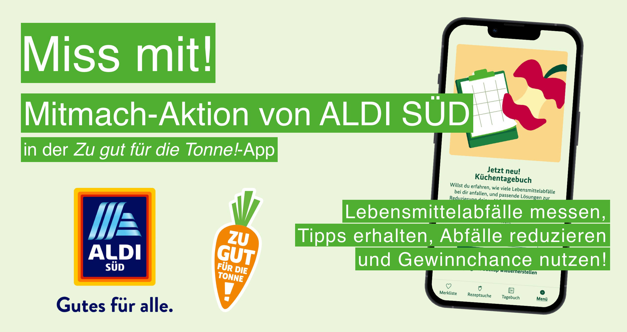 Mit der „Miss mit!“-Aktion von ALDI SÜD und der TU Berlin animiert der Discounter Nutzer:innen, ihre Lebensmittelabfälle mit dem digitalen Küchentagebuch der kostenlosen Zu gut für die Tonne! -App des Bundesministeriums für Landwirtschaft, Ernährung und Heimat (BMLEH) zu erfassen. Die App zeigt auf, wo Abfälle entstehen, bietet Tipps zur Lagerung und Resteverwertung sowie praktische Alltagsaufgaben. So sparen Nutzer:innen Geld und reduzieren Abfall – und haben die Chance, bei einem Gewinnspiel attraktive Preise zu gewinnen, darunter 30 Plätze für ein Wochenend-Kochevent. Ab Sonntag steht der QR-Code für den App-Download auch im digitalen ALDI SÜD-Prospekt bereit. Die Teilnahme unterstützt die Forschung der TU Berlin und ermöglicht wertvolle Einblicke in Lebensmittelverschwendung in privaten Haushalten. Die Teilnahme ist anonym und DSGVO-konform.