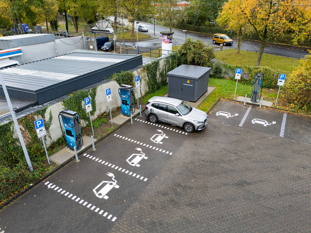 ALDI SÜD betreibt aktuell mehr als 700 E-Ladestationen mit insgesamt 1.600 Ladepunkten. Knapp die Hälfte dieser Ladestationen sind hochmoderne Schnellladestationen mit bis zu 200 kW Nennleistung, da diese während des Einkaufs und beim „Zwischenladen“ optimal genutzt werden können. Mit bis zu 200 kW schaffen die Schnellladestationen in nur 30 Minuten bis zu 500 Kilometer zusätzliche Reichweite. Damit betreibt ALDI SÜD in seinem Vertriebsgebiet das größte und leistungsstärkste E-Ladenetz im Lebensmitteleinzelhandel – das von einem Lebensmittelhändler vollständig in Eigenregie umgesetzt wird.