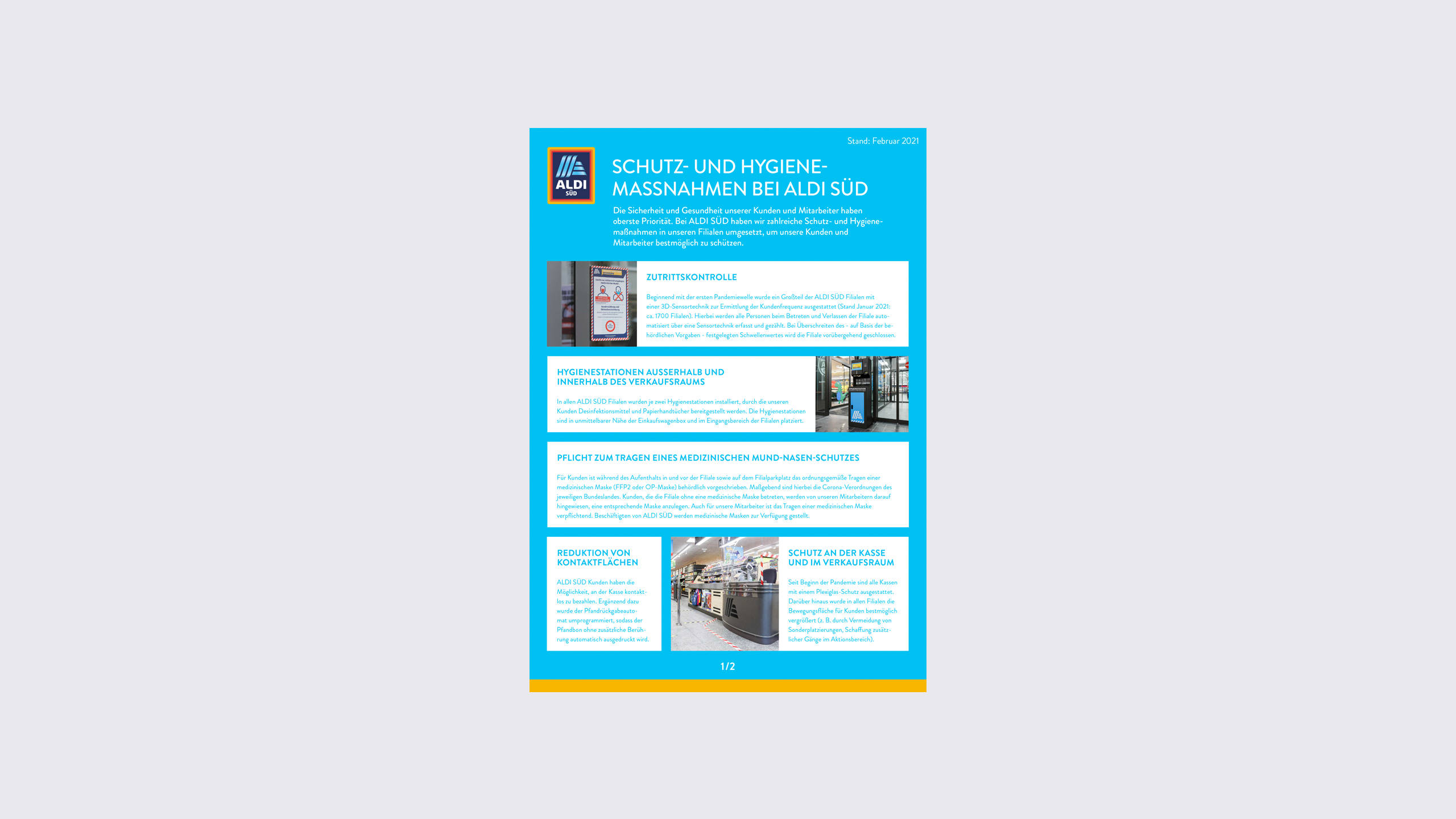 Informationen zu Schutz- und Hygienemaßnahmen in den ALDI SÜD Filialen. (Stand: 5. Februar 2021)