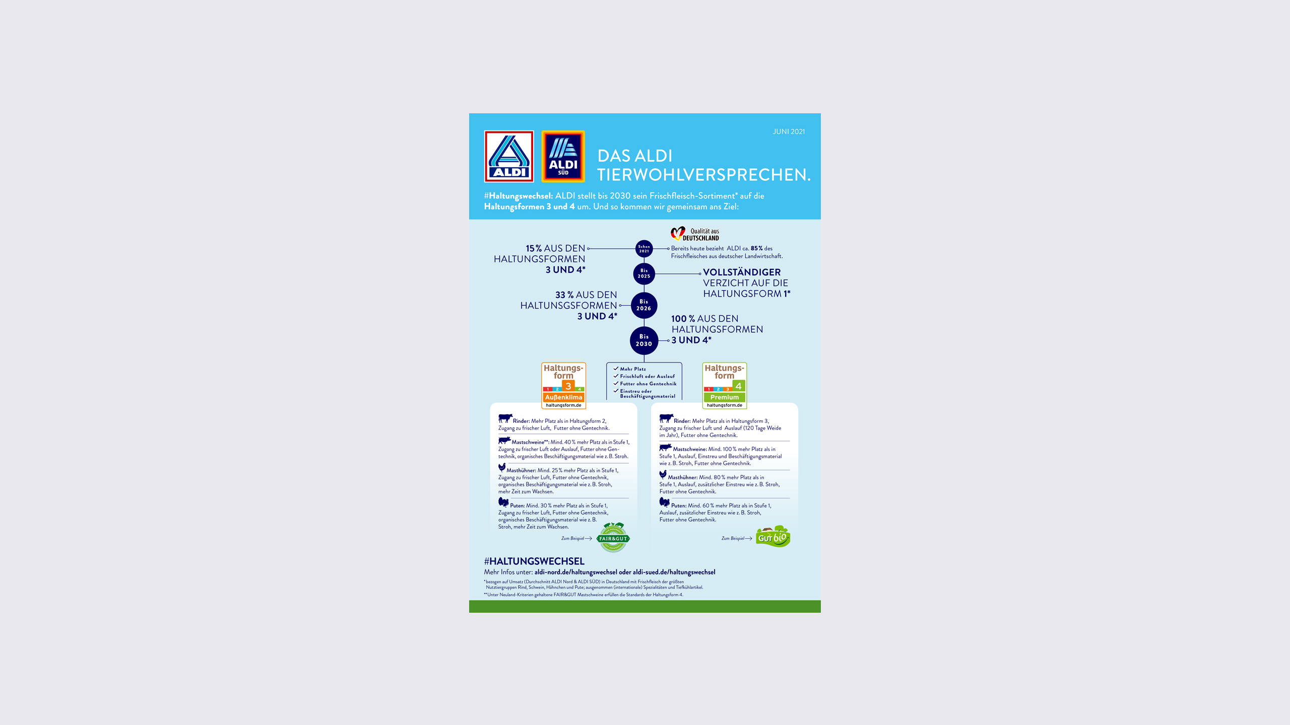 Informationen zum ALDI Tierwohlversprechen. (Stand: Juni 2021)