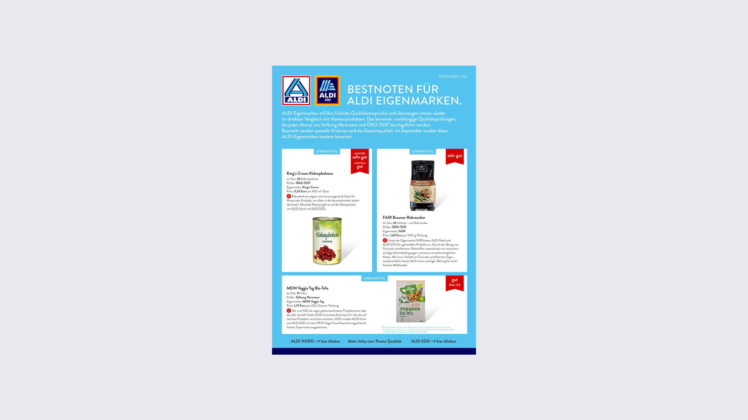 Informationen zu Qualitätsprüfungen der ALDI Eigenmarken. (Stand: September 2021)