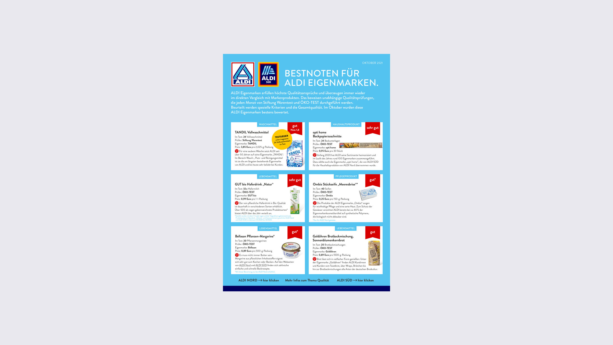 Informationen zu Qualitätsprüfungen der ALDI Eigenmarken. (Stand: Oktober 2021)