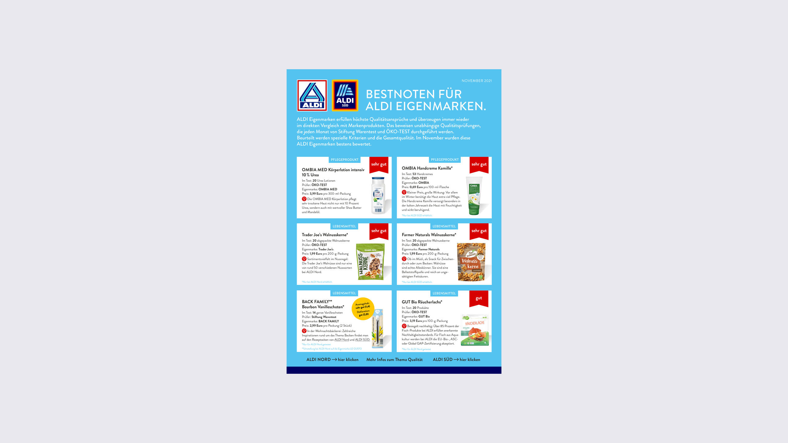 Informationen zu Qualitätsprüfungen der ALDI Eigenmarken. (Stand: November 2021)