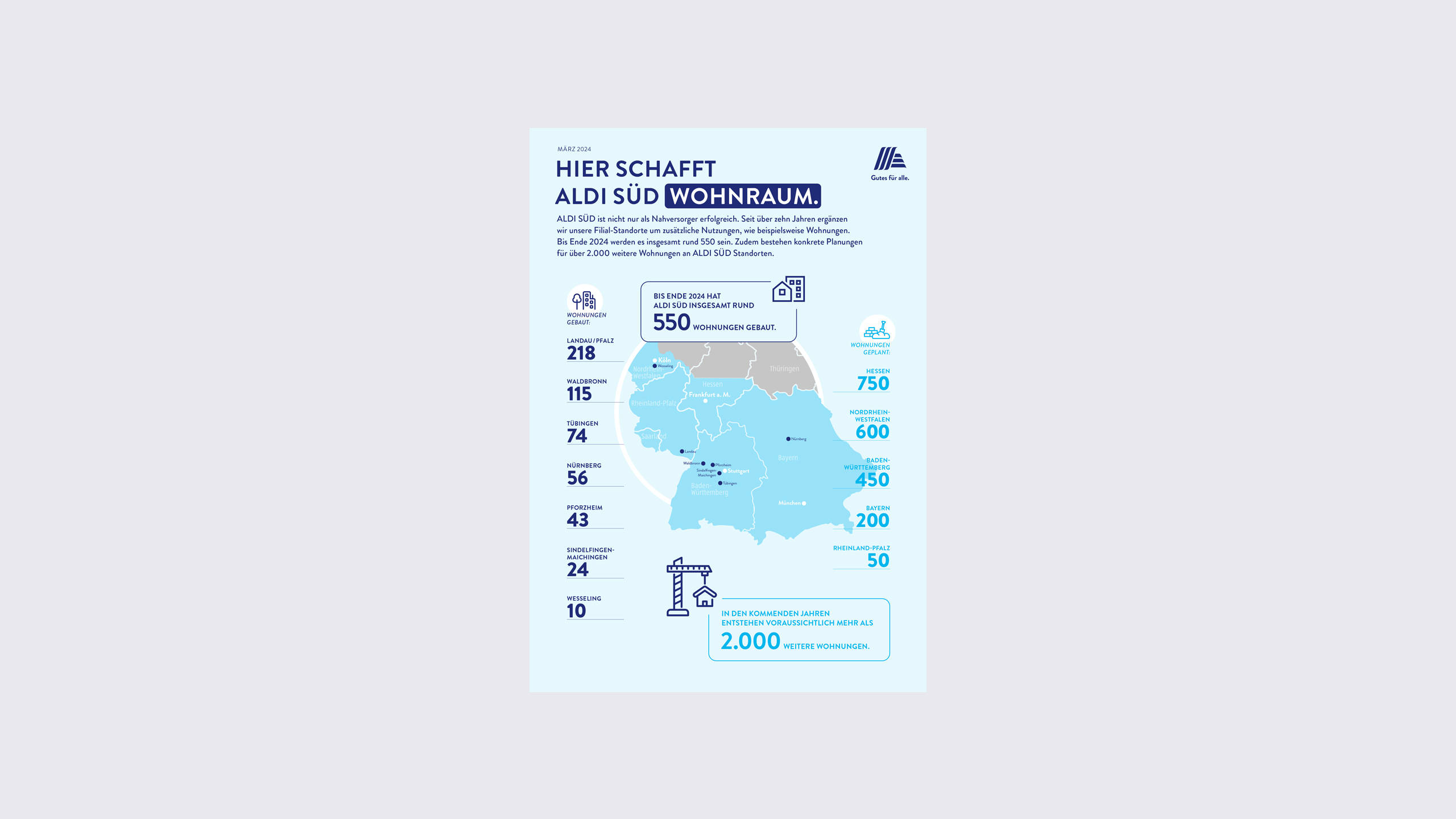 Informationen zum ALDI SÜD Wohnraum. (Stand: März 2024)
