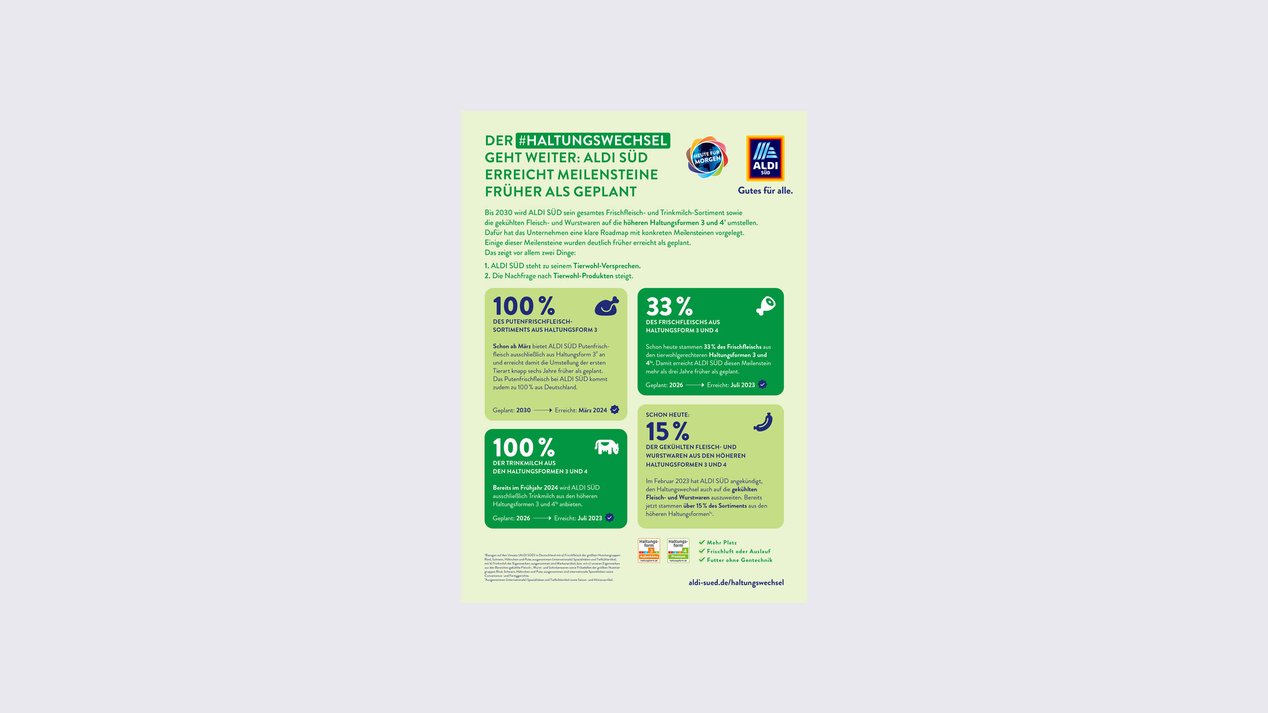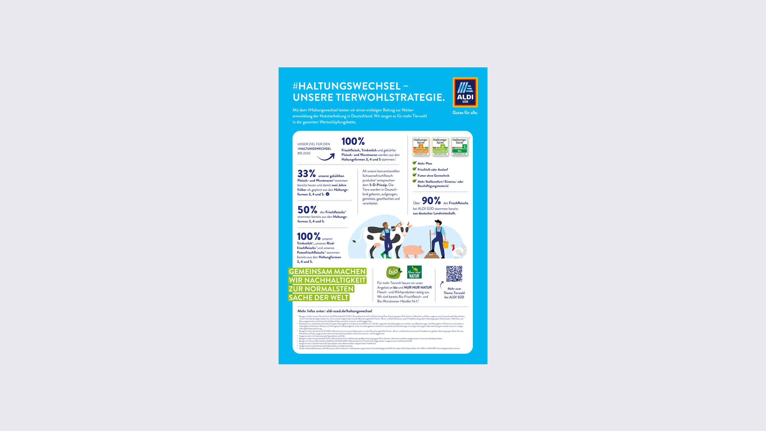 Informationen zum Thema Haltungswechsel Tierwohlstrategie bei ALDI SÜD. (Stand: Mai 2025)