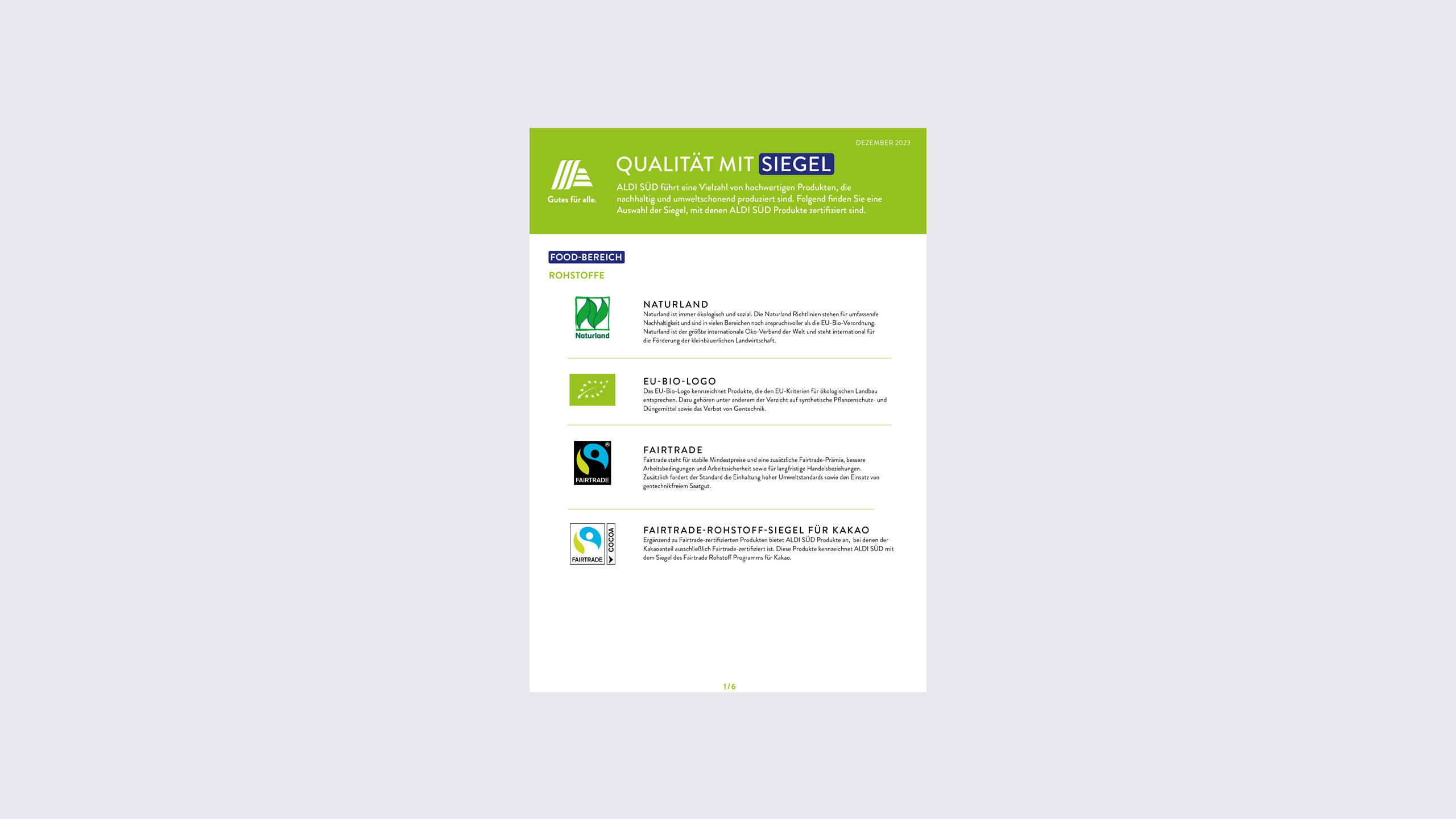 Informationen zu Siegeln, mit denen ALDI SÜD Produkte zertifiziert sind. (Stand: Dezember 2023)