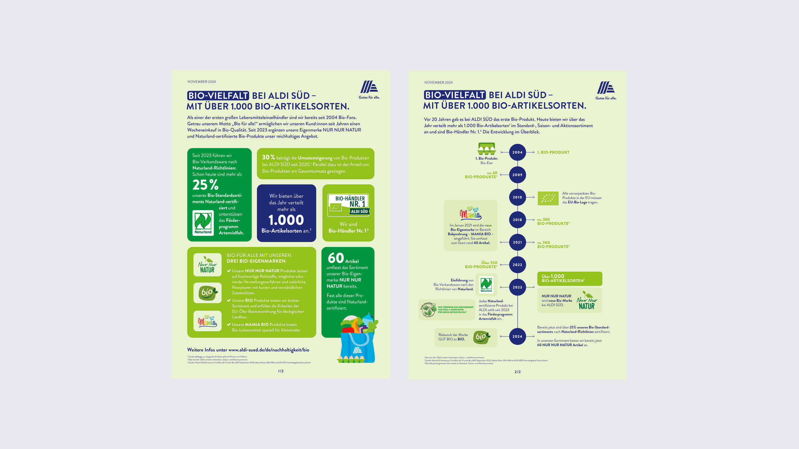 Informationen zum Thema "20 Jahre Bio über 1.000 Bio- Artikelsorten bei ALDI SÜD. (Stand: Dezember 2024)