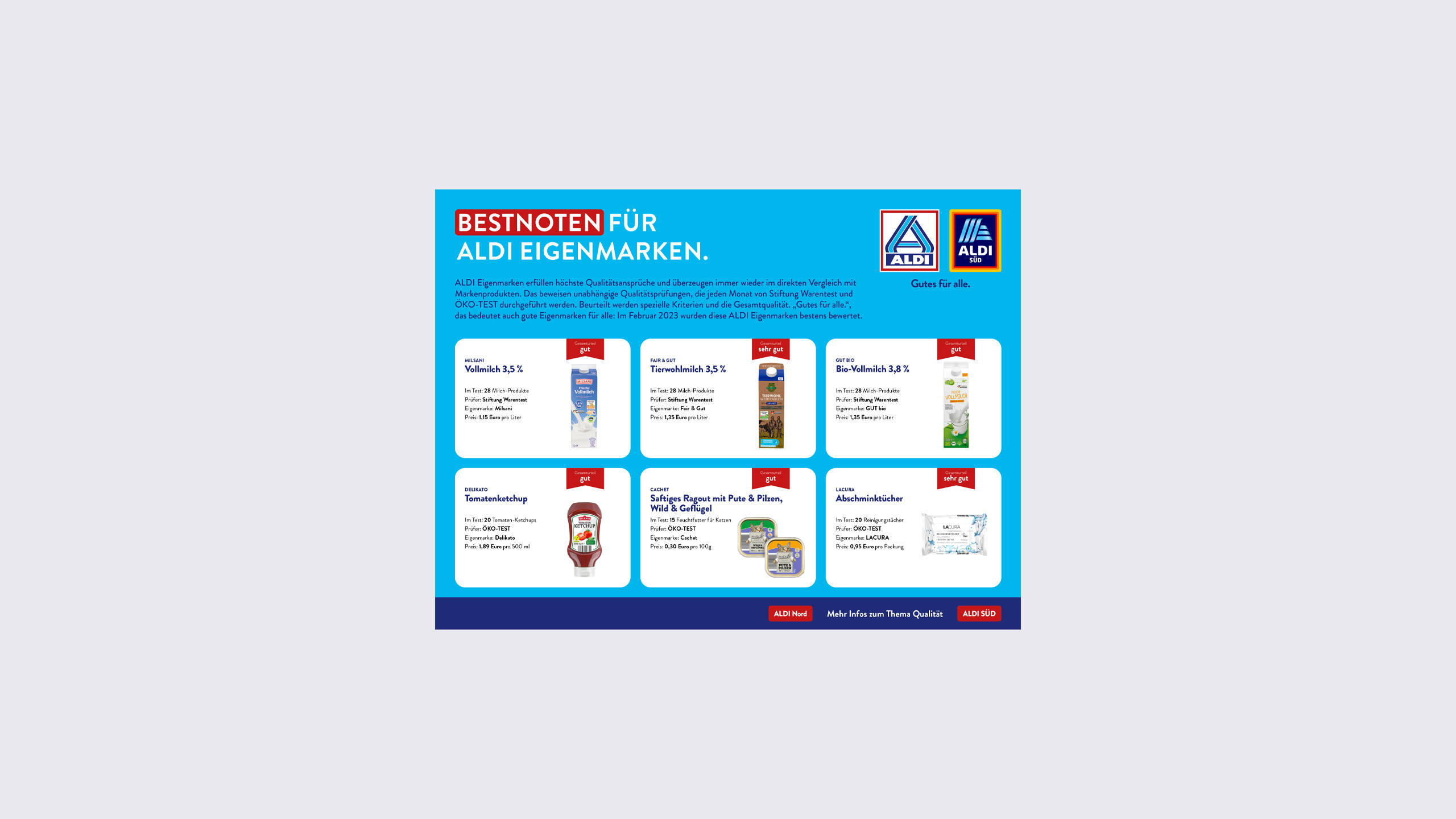 Informationen zu Qualitätsprüfungen der ALDI Eigenmarken. (Stand: Februar 2023)