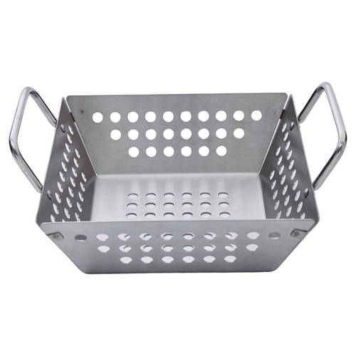 • Der große perforierte Grillkorb (23 x 18 x 9,5 cm) eignet sich perfekt zum Grillen von Gemüse, Fisch oder kleinen Zutaten, dabei sorgt er für gleichmäßige Hitze und verhindert, dass Lebensmittel durch den Rost fallen