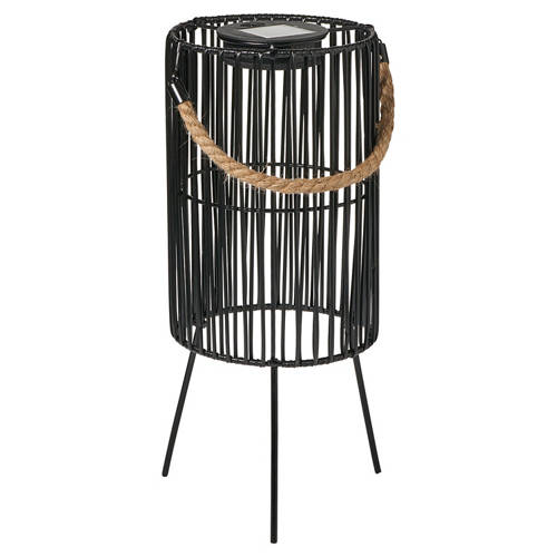 Solar-Geflechtlaterne, Zylinder, Schwarz