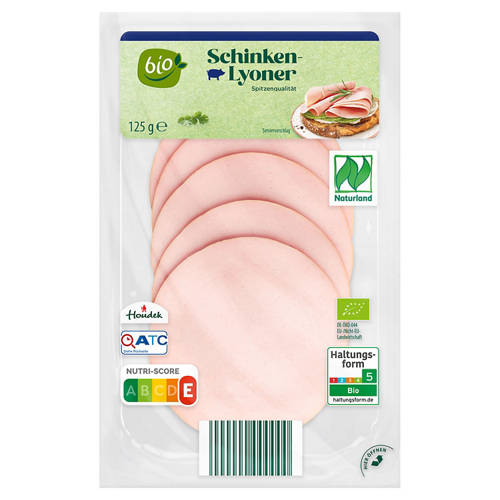 Bio-Wurstaufschnitt 125 g, Schinken-Lyoner