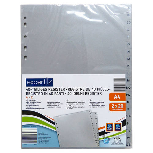 Dokumentenhülle und Register, Register 40-Teilig, Grau