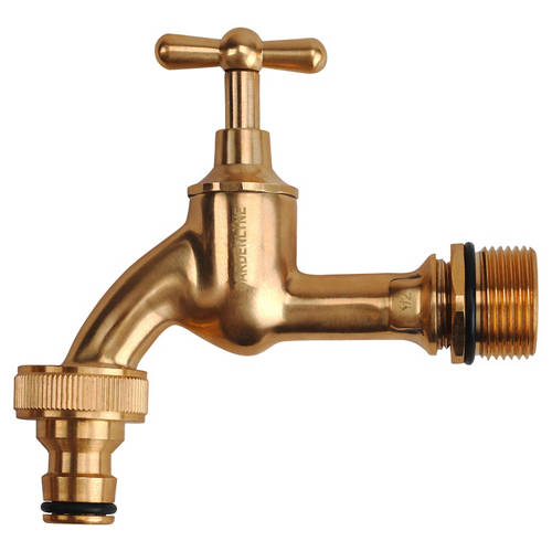 - Messing-Wasserhahn, zur Installation an gängigen Außenanschlüssen geeignet: