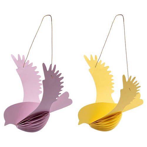 Oster-Dekoration aus Papier, Vögel, Pink/Gelb, 2er-Set