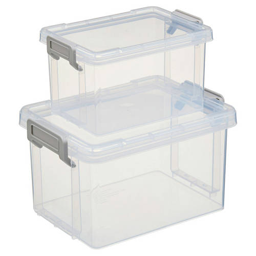 Stapelbare Boxen mit Griff, 2er Set, Transparent