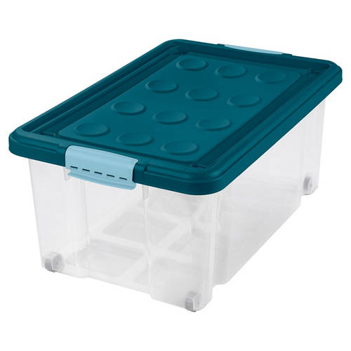 • Große Box mit Rollen und Deckel, 45 L, grau oder blau