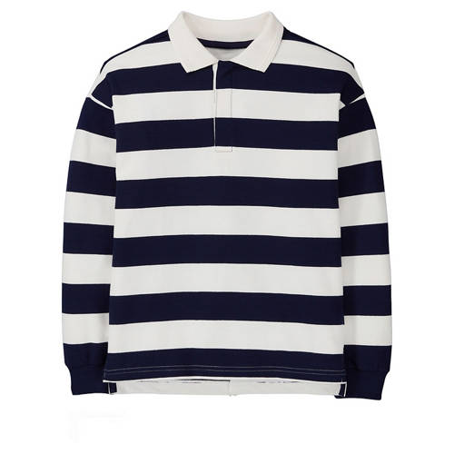 • Rugby-Shirt für Kinder, mit Polo-Rippkragen, Knopfleiste mit verdeckten Kunststoffknöpfen, 2x2-Rippbündchen an den Ärmeln, Seitenschlitze am Saum