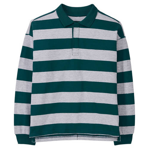 • Rugby-Shirt für Kinder, mit Polo-Rippkragen, Knopfleiste mit verdeckten Kunststoffknöpfen, 2x2-Rippbündchen an den Ärmeln, Seitenschlitze am Saum