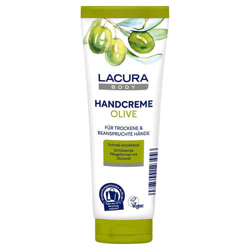 LACURA Handcreme Olive ist eine schützende Pflege für trockene und beanspruchte Hände. Die beruhigende Formel mit Glycerin und Olivenöl spendet langanhaltend Feuchtigkeit und wirkt einer Austrocknung der Hände entgegen. Die schnell einziehende Handcreme hinterlässt ein zartes, glattes Hautgefühl, ohne zu fetten. Hautverträglichkeit dermatologisch bestätigt.