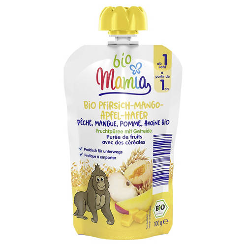Bio-Quetschbeutel 100 g, Apfel-Mango-Pfirsich-Hafer