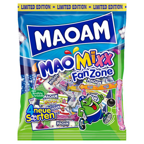 - Jetzt wird’s bunt! In die MaoMixx-Tüte kommt alles, was MAOAM-Fans Spaß macht: Stripes, Sour Stripes, Bloxx, Pinballs, JoyStixx und Happy Fruttis – alle Favoriten sind am Start. Maomaximales Kauvergnügen für Partys, Ausflüge oder einfach zum Reinbeißen, wo und mit wem es gerade passt