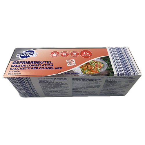 Materialinfo PE: Die Power Force Gefrierbeutel bestehen aus hochwertigem, recycelfähigem Polyethylen (PE).