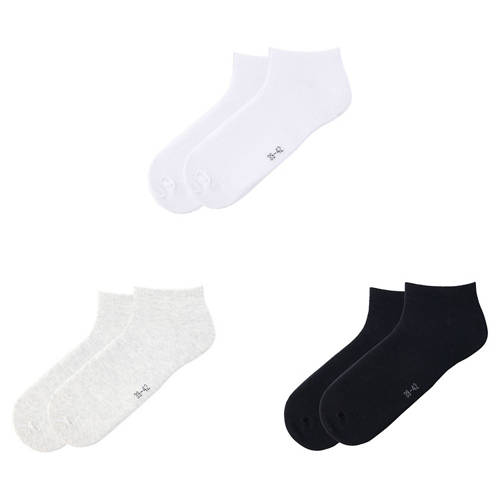 Damen-/Herren-Sneaker-Socken 3er-Pack, Weiß/Grau/Schwa, 35/38