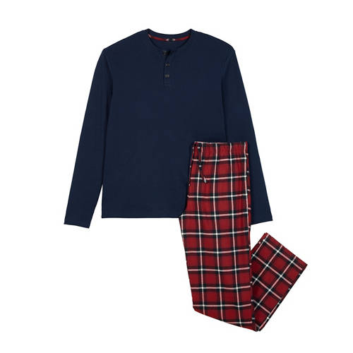 Herren Flanell-Pyjama, Henley/grau, L