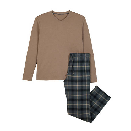 Herren Flanell-Pyjama, V-Ausschnitt/beige, M