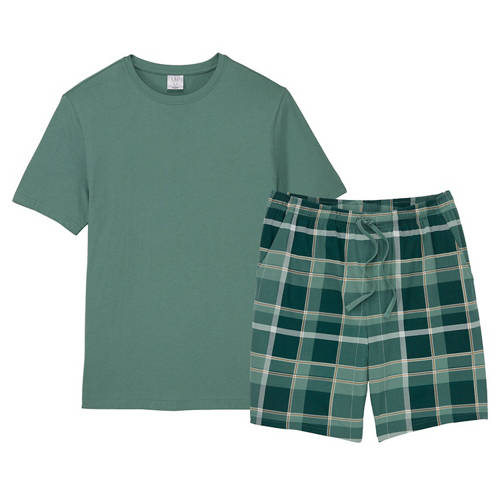 Herren Kurzer Pyjama, Grün/Kariert, XL
