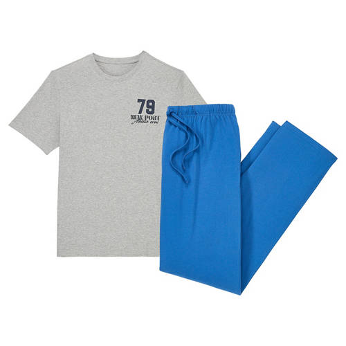 Herren Pyjama, Grau/Blau, L
