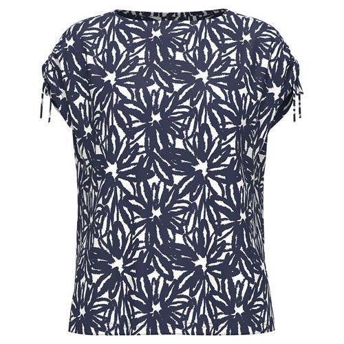 Damen Maritimes T-Shirt, Marine Blumen-Muster, L 44/46